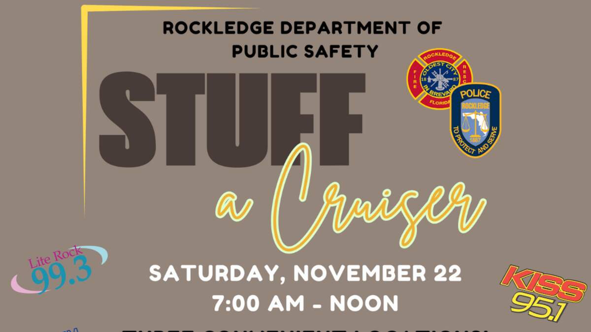 ·Join Lite Rock 99.3, KISS 95.1, WMMB and the Rockledge Department of Public Safety for the annual “Stuff-a-Cruiser” event on Saturday, Nov. 22nd from 7am-12noon!